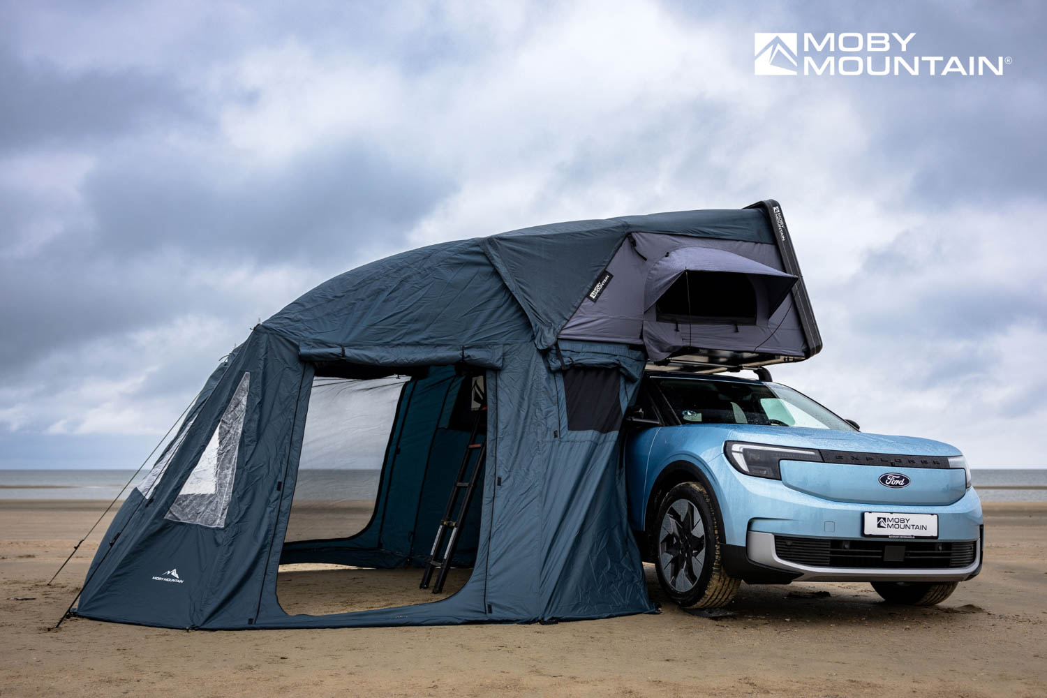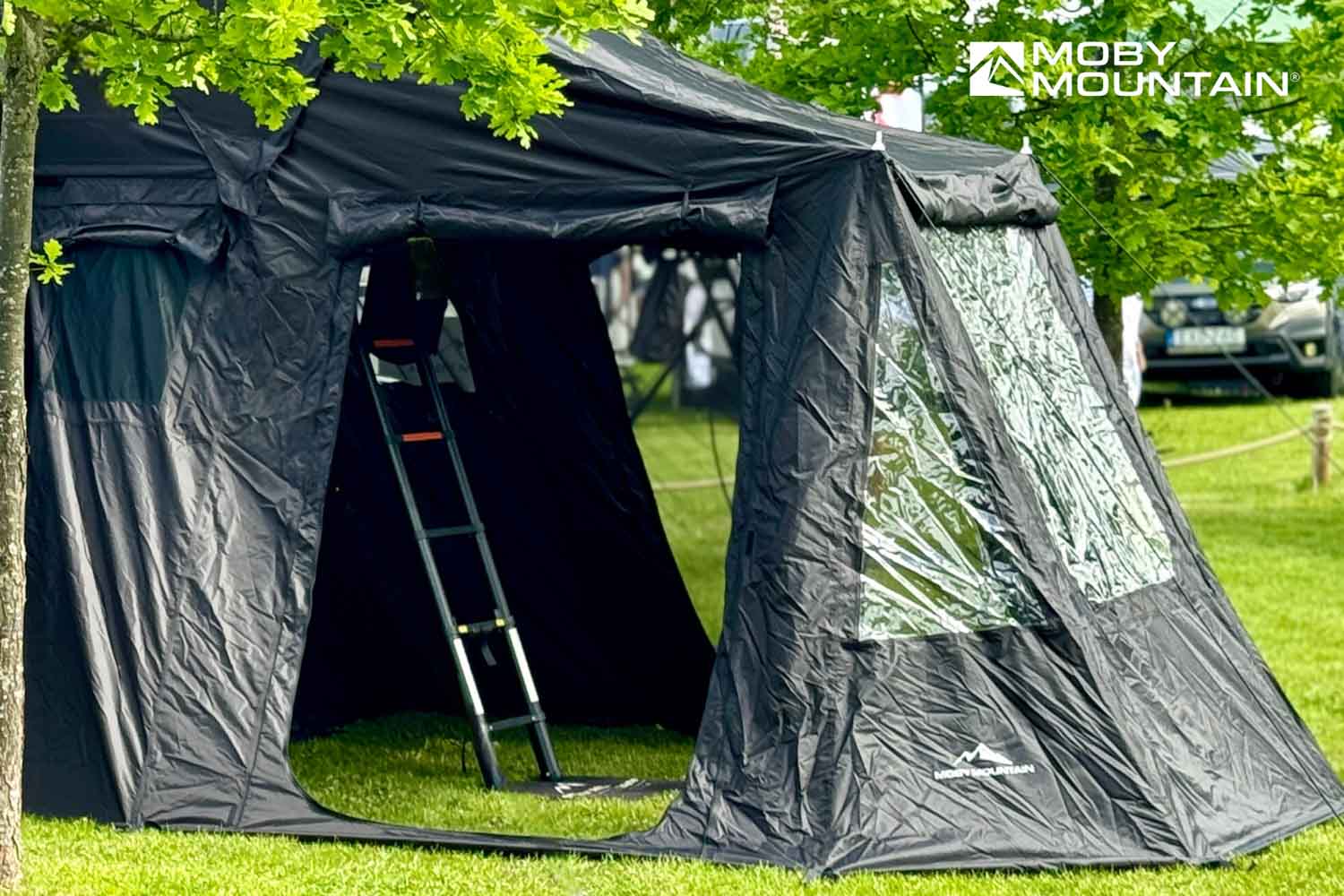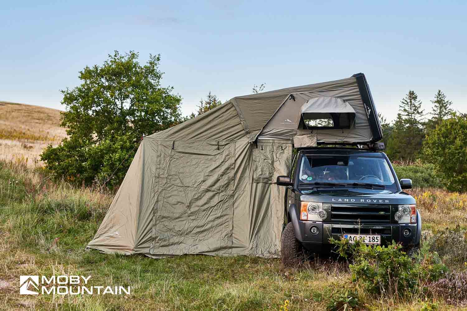 Az előtér teljesen az autó oldala felé zár, így az autó és a sátor között védett átjárás alakul ki. A nagy méretű ajtók és az ablakok szúnyoghálóval és fix sátoranyaggal is ellátottak, így jól szellőzik, mégis zárható és intim.