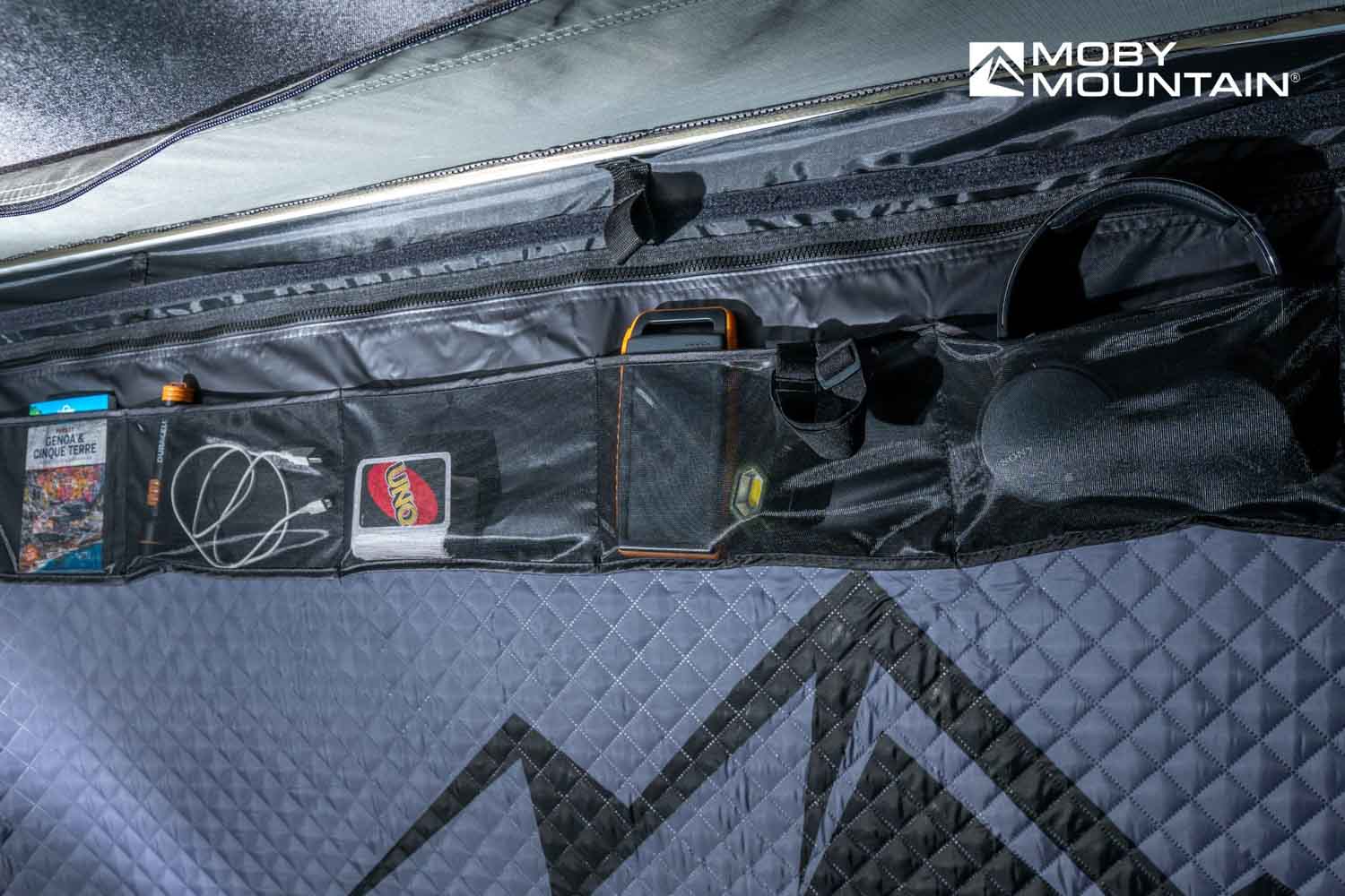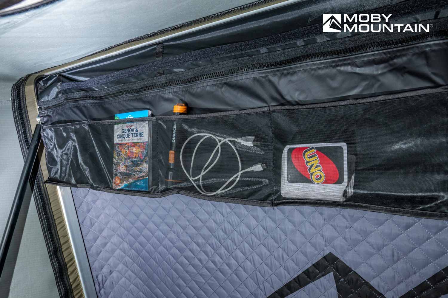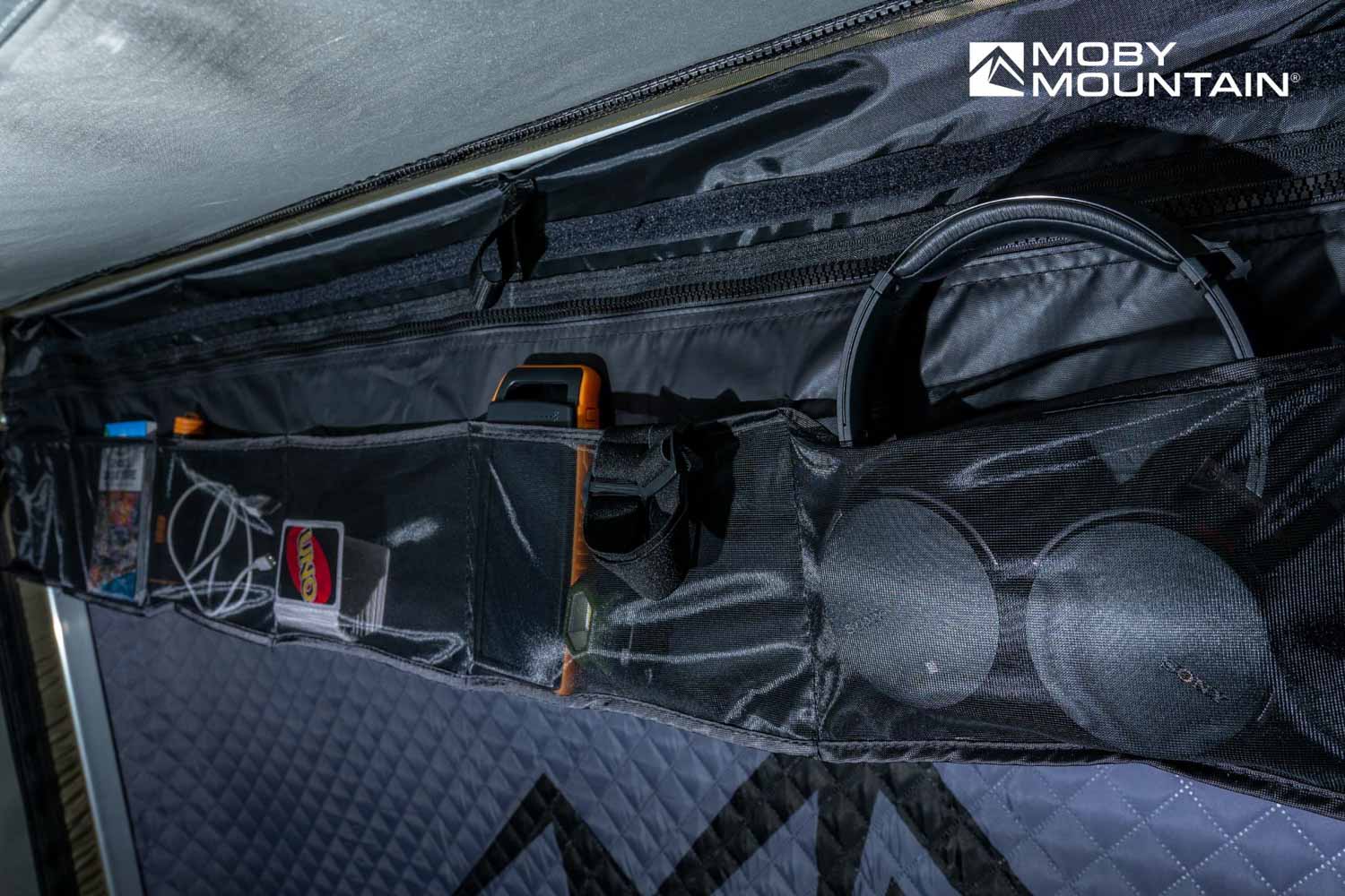 Tartsd rendben a kis holmikat a tetősátor belsejében! A Storage Pockets praktikus zsebeihez könnyen elérhetsz mindent, amire éjjel vagy reggel szükséged lehet — lámpa, telefon, töltő, szemüveg vagy powerbank…